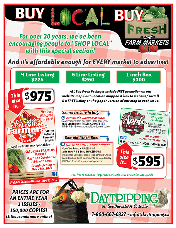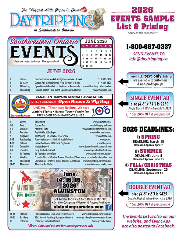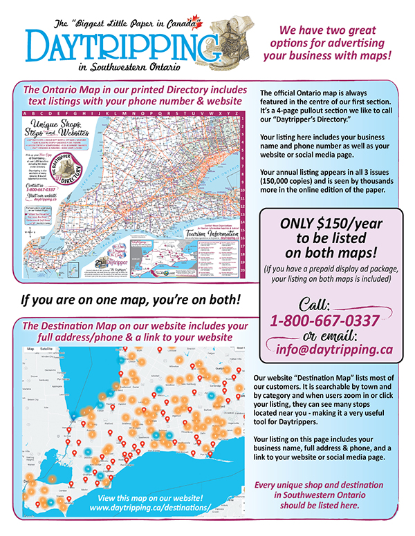 Daytripping Magazine has promoted the Best Shops, Stops, Towns and Events in Southwestern Ontario for over 30 years. If you own a Unique Destination, we need to talk.